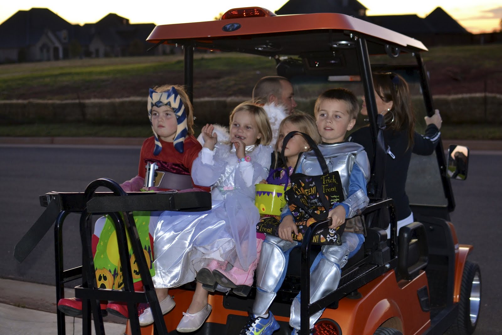 We had such a fun Halloween night. I really think we have the best neighborhood to trick-or-treat in! Just about everybody owns a golf cart so all the families ride around in their carts and the kids jump off and run to the doors. Much safer than cars driving all through the neighborhood. Ryan, Lisa, Peyton, Mama, Papa, Lolly, Pops, Tim, Erin, Lexi, and Jase all came over for pizza and then jumped on the golf carts to get some candy. They all came back with a sugar rush and bedtimes were pushed a little later...but completely worth it!