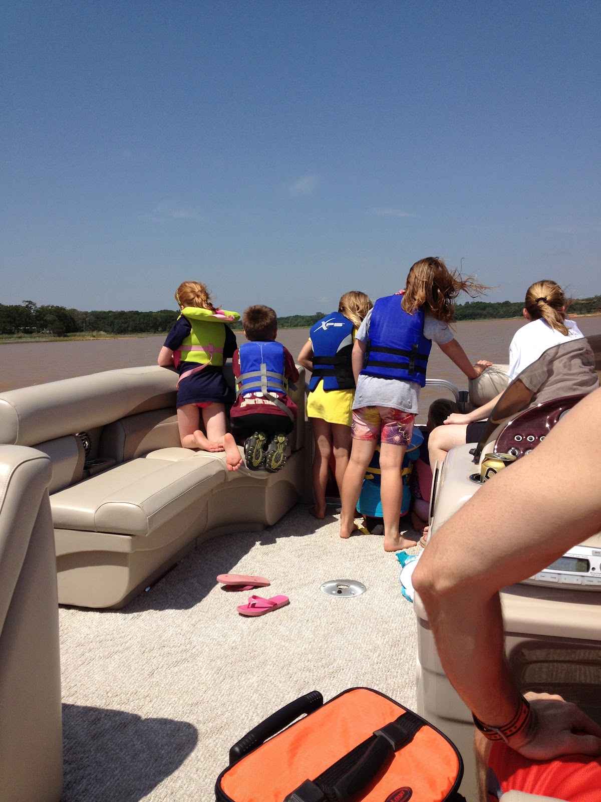 All the kids playing "captain" of the boat (with E making sure no one went overboard)!
