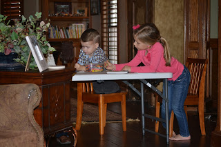 We decided to do Christmas a little early this year and celebrated with Mama and Papa on the 22nd. That way we would be able to do Christmas with Lolly and Pops on the 23rd and then have a relaxing day at our house on Christmas Eve and Christmas and we celebrated Jesus' birth. We went to Mama and Papa's house about 3pm and while we waited for everyone to get there the kids colored at the table and played with each other. Soon everyone arrived and we quickly filled our plates with Mexican food and desserts!