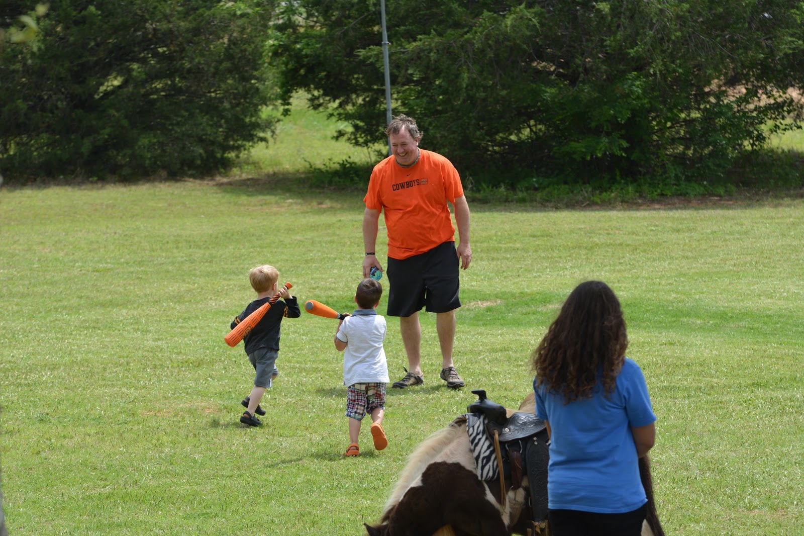 After Hadley's softball tournament we went to the lake to celebrate Buck's 3rd Birthday. The kids all played outside, the inside and all sorts of superhero decorations, and they had a pony come to the party for the kids to ride. It was such a fun time for the kids. Buck was a little scared of the pony at first but by the time it was all over they had each taken a couple rides. I snapped just a few pictures from the day of all the kids having fun!