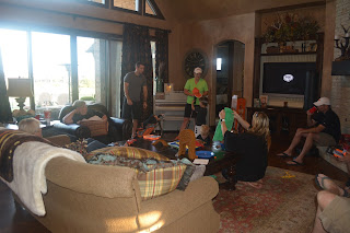 We left for work and Hadley went to school. Hudson had an awesome day with Kristin! She spoiled him rotten with a trip to Chuck E Cheese and to Barnes and Noble (his two favorite places). On the way home from work I picked up a cake for our birthday boy and all the family that was coming over. We had a big night planned. E's family, Ryan's family, Lolly, Pops, Mama and Papa all came over to celebrate our 5 year old! He opened presents and everyone ate pizza and cake. We had such a great time.